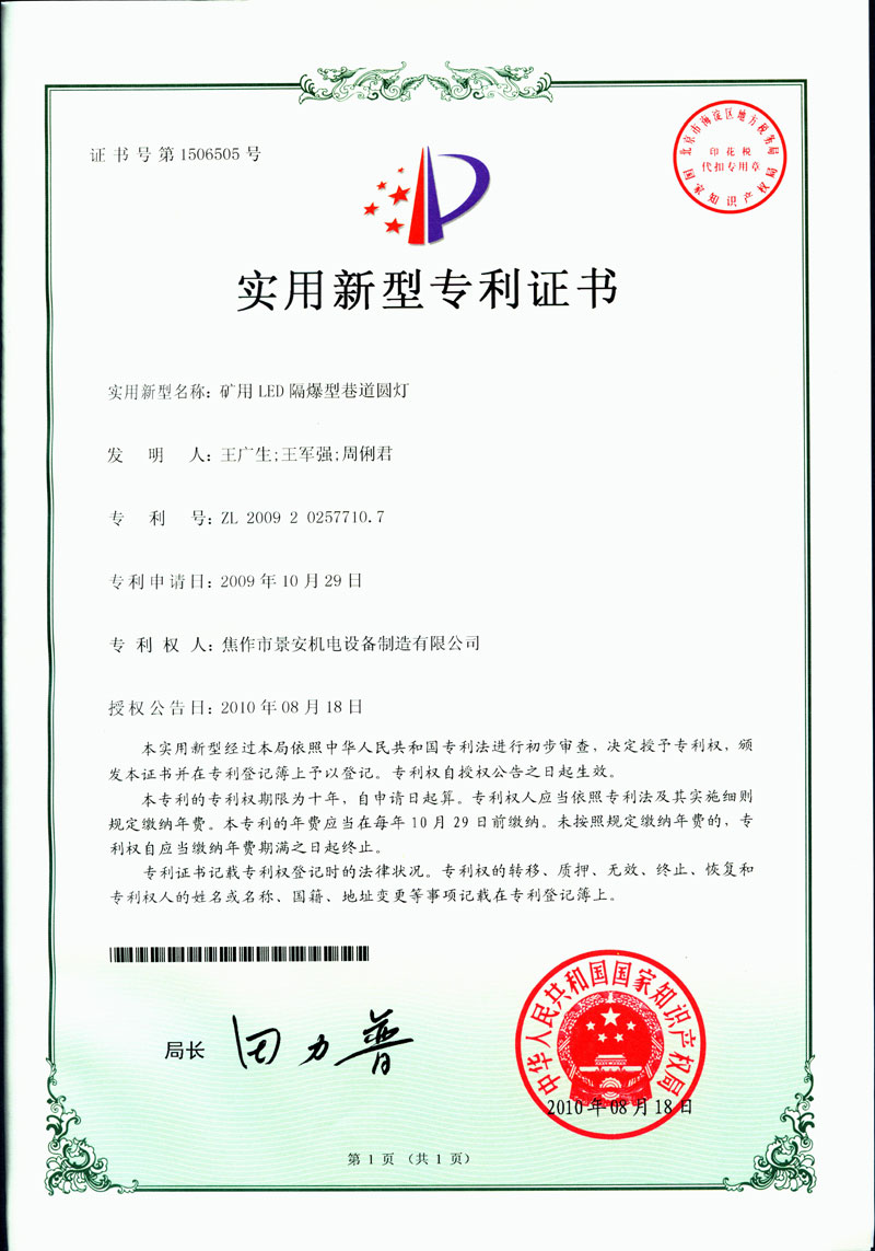 焦作景安公司始終堅(jiān)持“以科技為先導(dǎo),以市場為導(dǎo)向”的發(fā)展戰(zhàn)略,不斷進(jìn)行新產(chǎn)品的研制和開發(fā),在國家“六五”到“九五”期間,承擔(dān)和參與了國家多項(xiàng)科技攻關(guān)項(xiàng)目。并被中國電器工業(yè)協(xié)會(huì)評(píng)定為“質(zhì)量可信產(chǎn)品”。特別是在礦用防爆燈領(lǐng)域,礦用隔爆型半導(dǎo)體(LED)照明燈具,2008年列入國家火炬計(jì)劃,獲2009年河南省工業(yè)和信息化廳的科技成果二等獎(jiǎng),并擁有多項(xiàng)國家專利。